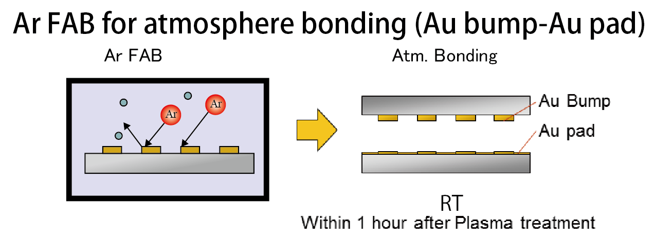 | ①超高真空環境の量産化対応 / Equipment for mass production in UHV SABのデメリットとしては1つ目にUHVという真空度が必要なことである。これは折角、活性化して結合手を露出させても不純物が存在する環境では対象ウエハと接合前に不純物と結合して活性化能力が落ちるためである。 このUHVという環境は真空引きにベーキングや時間を要するため、研究開発用途では使われても量産装置では使いにくいという課題があった。しかし、現在では接合チャンバーに高効率なロードロックチャンバーを設けることでスループット向上に成功している。 ②大口径対応Arビームソース(FAB) / Ar Beam Source for Scanning Large Area up to 12' 2つ目に従来のArビームソースでは小さなサンプルは処理できてもウエハのような大きな表面を均一に処理することができなかった。2インチウエハぐらいが限度であり、そのため研究開発の域を抜け出る妨げとなっていた。そこで、今回スキャン可能なArビームソースを開発し大面積を均一に処理することが可能となった。12“ウエハの量産機へも適用している。 ③Siナノ接着層対応ビームソース / Special Beam Source for Si Nano-adhesion Layes 3つ目にSABではイオン結晶性の材料が接合できない点がある。これは酸化膜や窒化膜などであり、半導体では接合したい材料となり、半導体への適用が遅れている原因でもあった。 これに対応すべく一つは上述した親水化接合への適用であるが、もう一つの方法として活性化処理の間に中間層としてSiスパッタする方式である。 本方式においては1層に満たない程度のSi原子を界面に介在させることでイオン結晶性の材料でも接合を可能とした。また、いかなる材料へも適用することができアプリケーションが広がっている。 ![]() ④Si-FAB ArやN2によるビーム照射時にSi原子を同時に照射することでSiが層になることができずSiリッチな表面を生成します。 電極を伴う接合においてもショートすることなく絶縁性もキープしたまま接合強度をUPさせます。 また選択的エッチングによりSi空気層発生するSICの接合にも好適です。 ![]() |